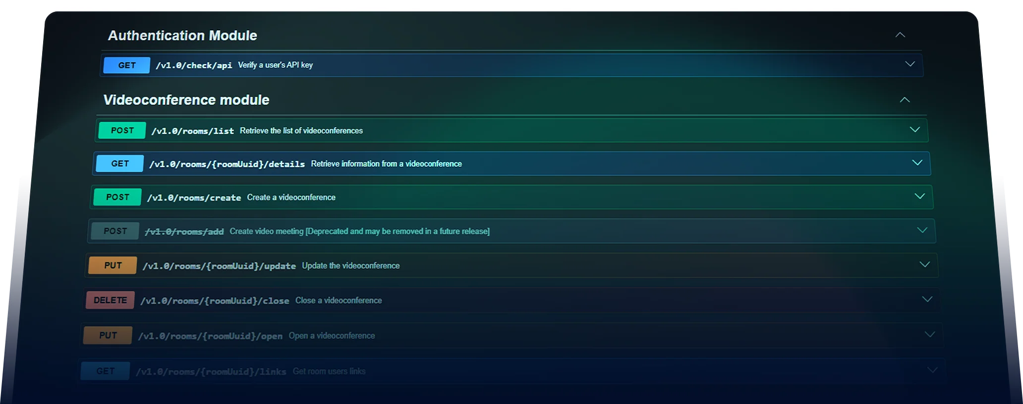 Full programmatic control over videoconferencing lifecycles, from creating rooms to automated closing.