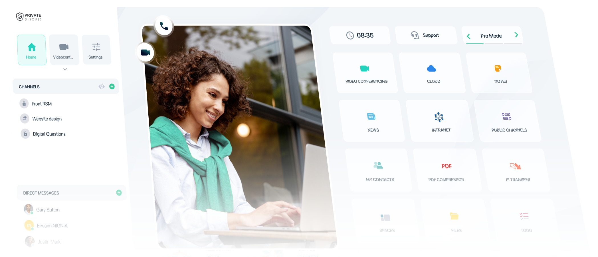 Private Discuss offers a reinforced and intuitive authentication feature that confirms each participant's identity through a unique digital fingerprint generated using their camera, microphone, and device.